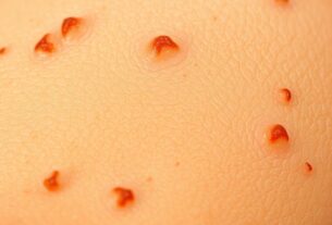 - blizny na skórze – mogą być wynikiem wysypki lub martwicy tkanek,